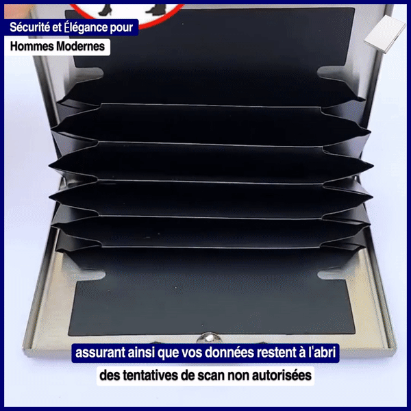 يجمع حامل البطاقة المصنوع من الفولاذ المقاوم للصدأ بين الأمان والأناقة. إنه مصمم لمقاومة الماء والصدمات، وبفضل حجراته الستة، يمكنه استيعاب بطاقات الائتمان وبطاقات العمل والأوراق النقدية.